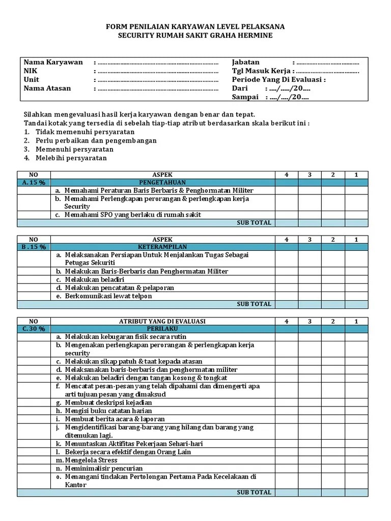 Contoh form penilaian karyawan security rumah sakit.
